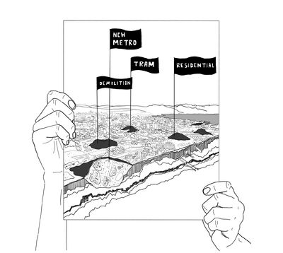 Planet earth is increasingly urbanized. Cities are perpetually expanding and the need for new infrastructures is urgent. Urbanization is inextricably linked with many environmental impacts such as loss of biodiversity, poor water quality, urban heat islands, CO2 emissions, air and noise pollution, devastation of the natural environment and problems of waste disposal. Urban sprawl is not damaging only the surface of the planet, but also the underground. Construction activities are also contributing to the devastation, extraction and movement of soil. The underground of earth is now an assemblage of networks, which can be described by the term groundscapes. The groundscape is an underside of the world, it is what we would see when diving if the ground was like the ocean and cities like vessels on its surface. Goal of the following project is to tackle the environmental problems caused by the perpetual urbanization and construction processes, the endeavor for a sustainable transition, the residual spaces generated by the alteration of the forms of mobility and the management of the underground soil that is going to be moved.