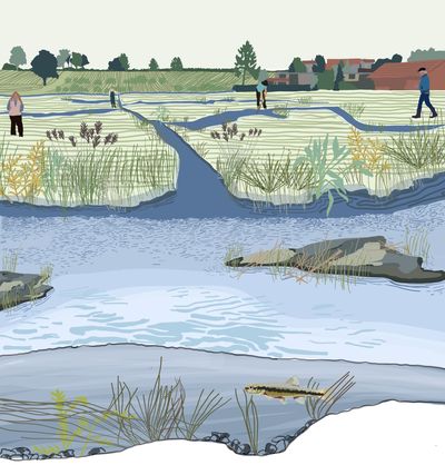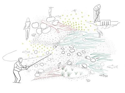 By reminding ourselves that every action happening within the watershed will have an effect on water bodies as habitats, this project proposes a systemic change in our relationship to water. We propose a vision where we claim the river’s dynamic behaviour as an essential ecological entity in the territory, allowing it to shift towards an understanding of the river as a living organism. For this purpose, our project enhances the entanglements between land and water in order to create ecosystems of vital habitats for all living organisms as well as places for us to encounter and interact with nature.